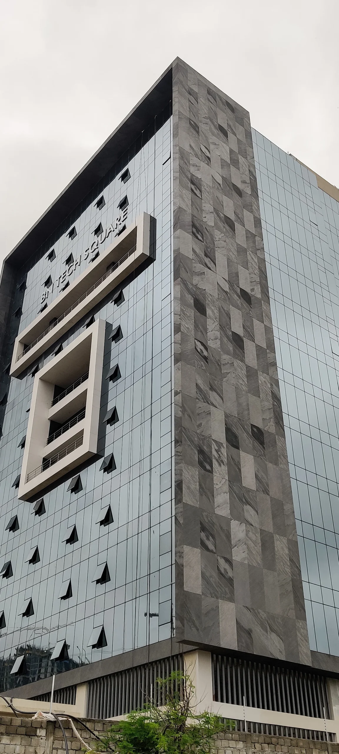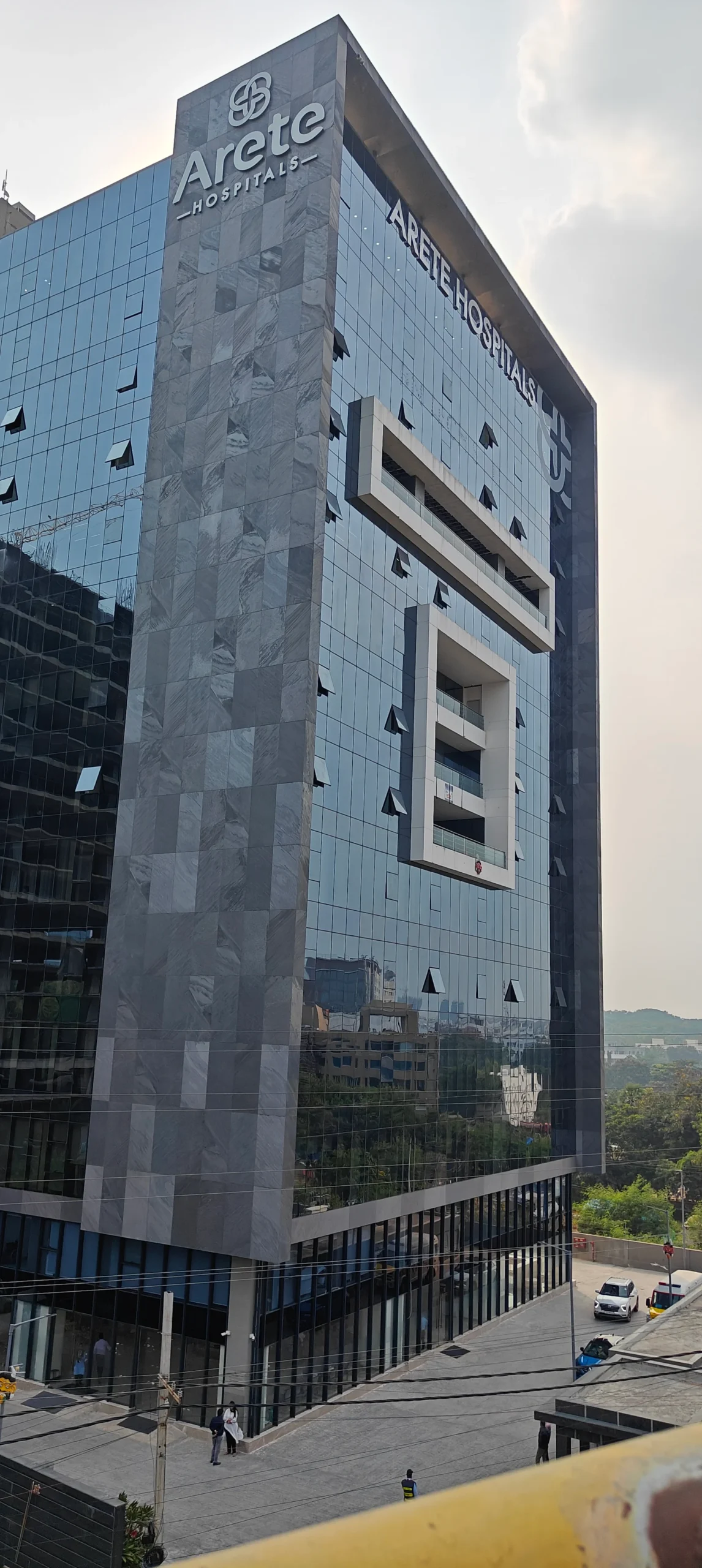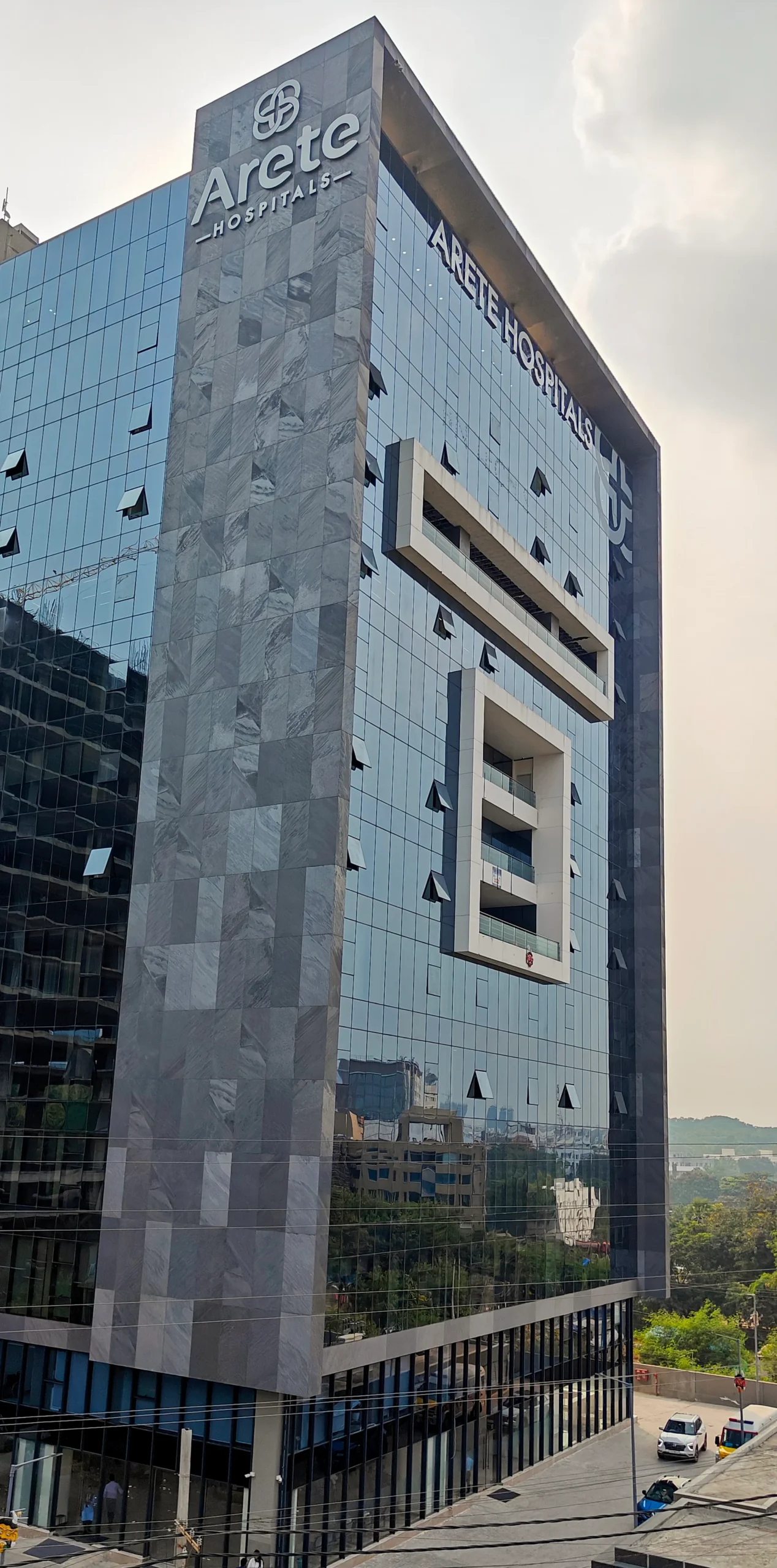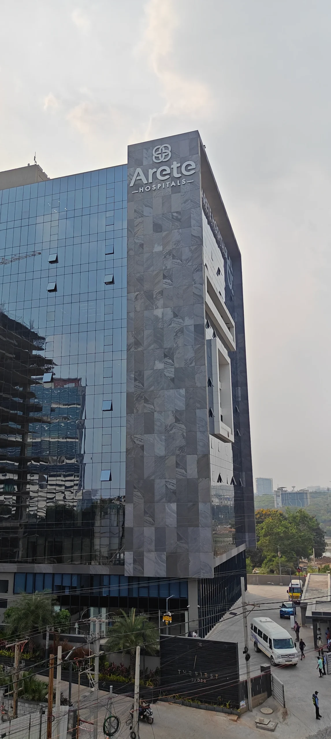 For this hospital project, the facade showcases Quartzite Black Star, chosen for its strength and sophisticated black finish. This material not only enhances the building’s modern look but also ensures long-lasting performance even in a high-traffic environment.